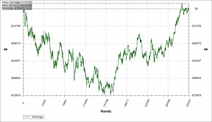 Прокравяка, Так имея адекватный винрейт на дистанции, проще откатать 100к за месяц и забыть стрик как страшный сон, чем мучаться несколько месяцев играя по 30к(если речь не о высоких лимита конечно). Я вот часто слышу от знакомых, как кто-то уехал в Польшу и пашет на заводе 12-часовые смены, за зарплату 800-1000$. Неужели играя в покер, сидя в удобном кресле, за топовым компом, нельзя себя настроить на то, чтобы не филонить? На самом деле такая возможность есть далеко не у каждого. Я вот сам себя корю за то как разленился. В свое время на нл25 играл против filhjg. Человек на 4 столах старзов откатывал 70-80к в месяц, и благодаря этому, даже имея отрезки по 40к в микроплюс или в 0, ежемесячно имел профит около 1,5к. Вот вам и дисперсия.