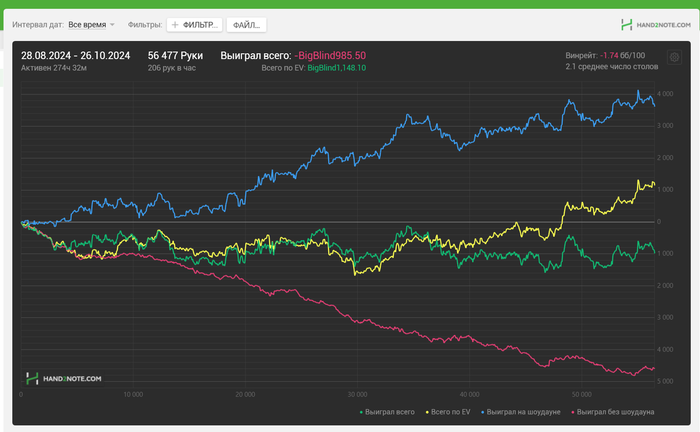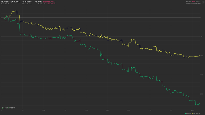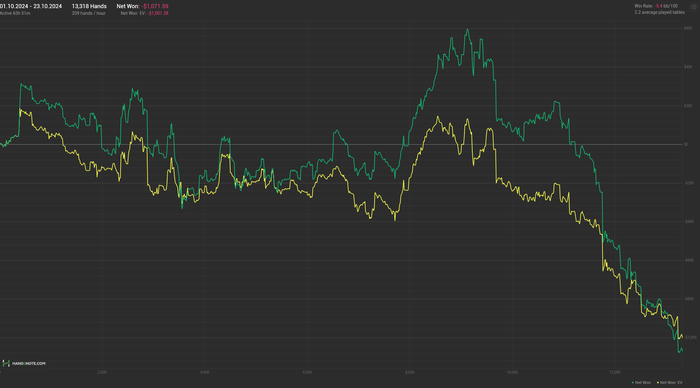 Еще бывает одну сессию катнул аповую и кажется дело сделано на сегодня, дальше-то ждет уже только боль (ну мозг так работает, типа раз апнуло, то скоро разъебут обязательно). Ну и дистанция от этого страдает сильно. Я в целом часто ищу причины НЕ катать, потому что покер для меня в основном приносит боль.