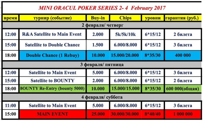 Добрый день дамы и господа, представляю вам анонс следующей "Mini Oracul Poker Series", которая пройдёт в стенах нашего клуба со 2 по 4 февраля