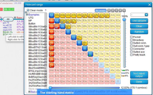 Ожидание 4бет пуша против 7% 3бета сб 2.5х. Положительное ожидание таких рук, как 99 и AJs вовсе не говорит, что их надо 4бетпушить, не только потому что нужно сравнить это ожидание с ожиданием от колла, но и просто из-за винрейтмаксимайзинга.