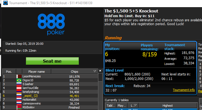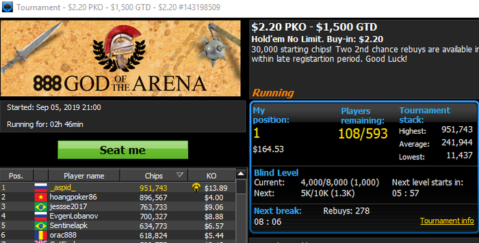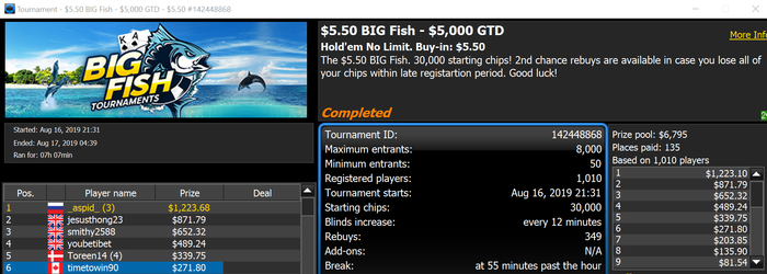 Итог - прикольно было отобраться через лесенку за 3.3, потом 33 и в итоге отыграть турнир за 800 ойро.