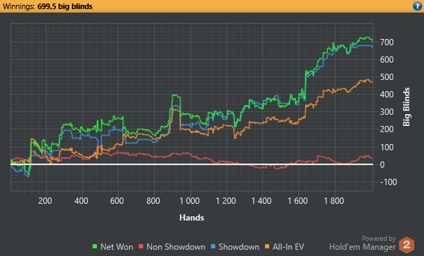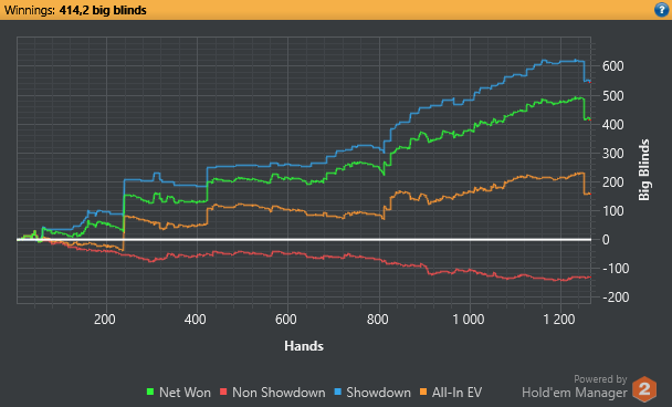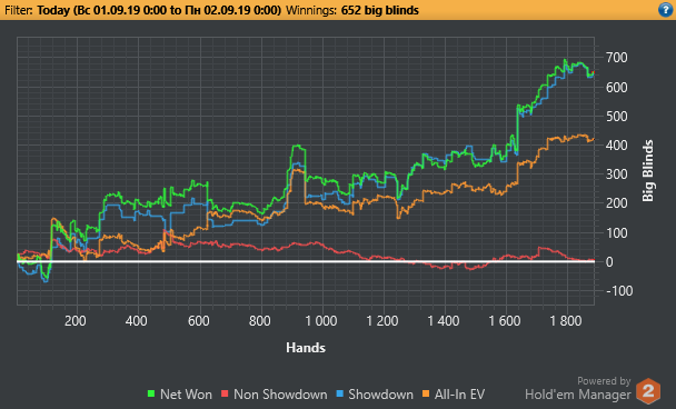 После вылета из дня 1С пробовал еще сат пару раз, но там уже сложно - лудоманка пошла, подъехали молодые интернетчики и понеслось). Кстати, многие неплохо полянку стригут. Хайроллер тоже не задался. По старой доброй традиции иду в кэш. Часа 2 заливал, подстройку делал так сказать, да и не заходило толком. Потом понеслось - набил 300 ВВ, но есть фиши посильнее, для которых банк в 900 $ - не банк, идут до конца будучи слабее до его говнейшества ривера.