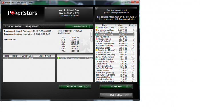 А ну еще были 2 дипа, 36е место в 8(2х турбо), и в районе предфиналки гипертурбика за 25 дали по 200 баксов