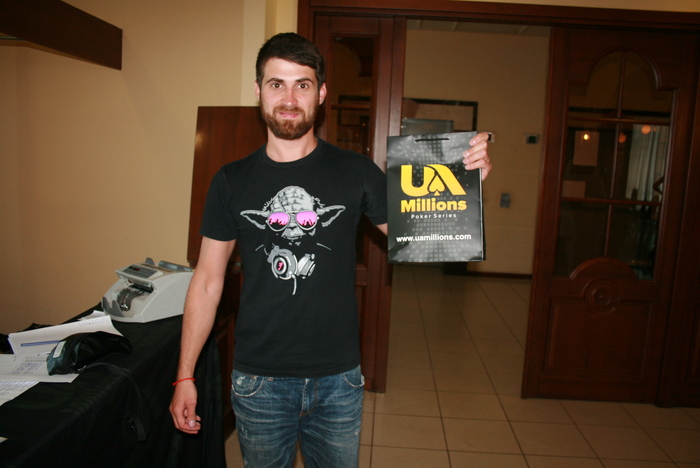 Борьбу за победу в турнире Monster Stack Plus продолжает 9 человек. 10-е место занял Максим Клопоток из Ровно. Его пара восьмерок не устояла против пары тузов чип-лидера турнира Владимира Чащина. Максим покидает турнир с 14 000 грн.