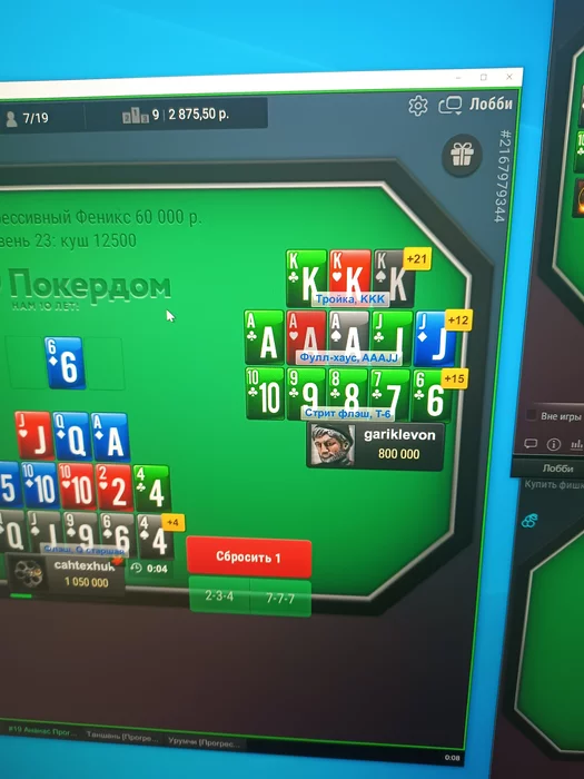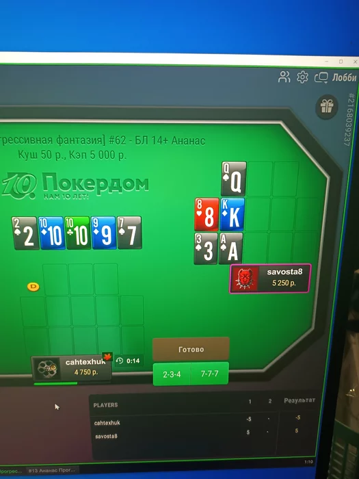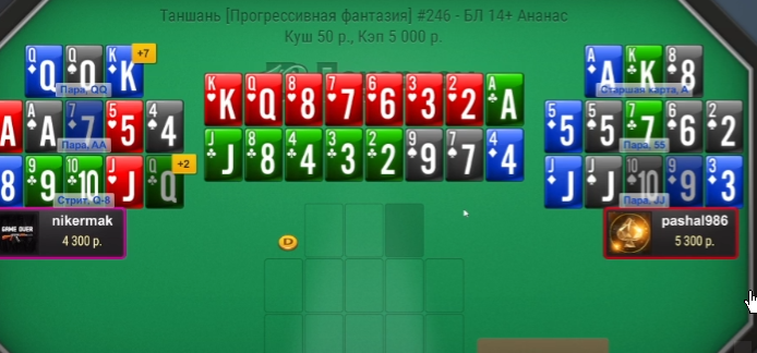 14 vs 17 кушей ... 3 куша ошибочка , бывает ... но не со всеми) по факту больше конечно вышло ... оппонент именно в этой раздаче получал скуп ...