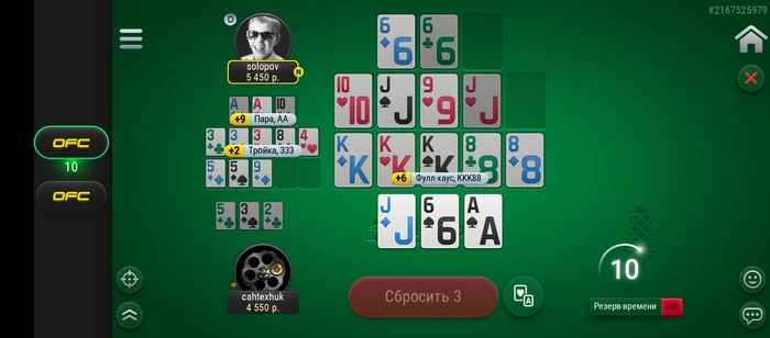 Дичь продолжается. Началось все с императора. С 4 захода крутанулся, собрал фанту с повтором 444 наверху. Дальше две фанты на тузах пустые а оппу в ответ две тузовые на +80 аут.