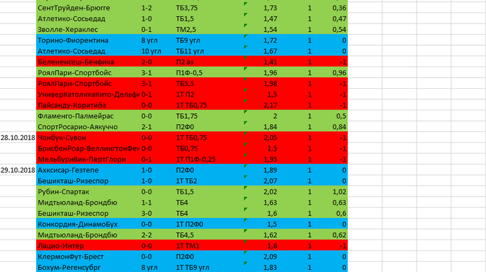 Итого, за октябрь проставлено 486 ставок, проиграно 30,6 номиналов с ROI -6,29%. Все ставки сделаны live на СБОБЕТ. Общий ROI за все время: -4,12%. Принимаю это за объективный показатель моей игры на данный момент на СБОБЕТ.