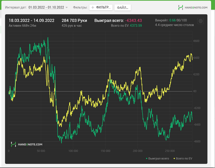 Может мне кто-нибудь объяснить, как человек играющий три года в стабильный плюс, способен попасть в такой отрезок?