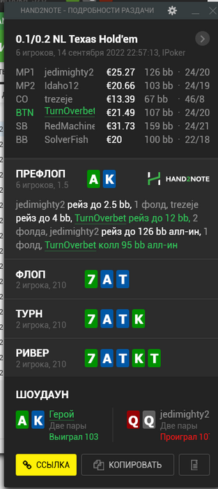 И единственный выигранный стек. И то я уже был в тильте и не уверен что тут колл с АК норм.