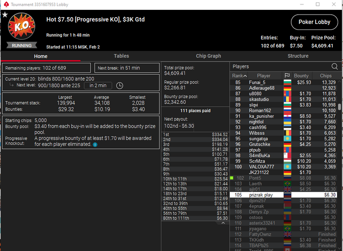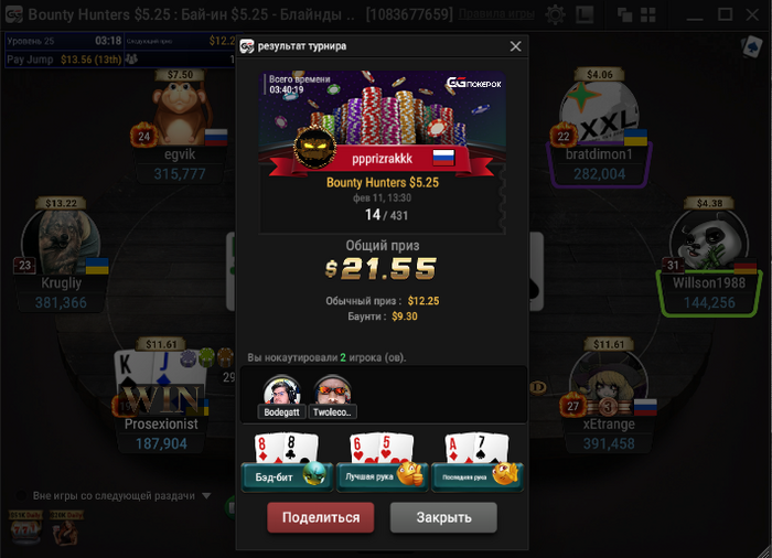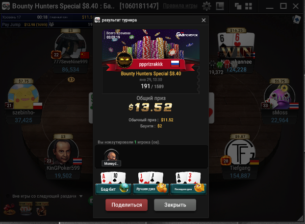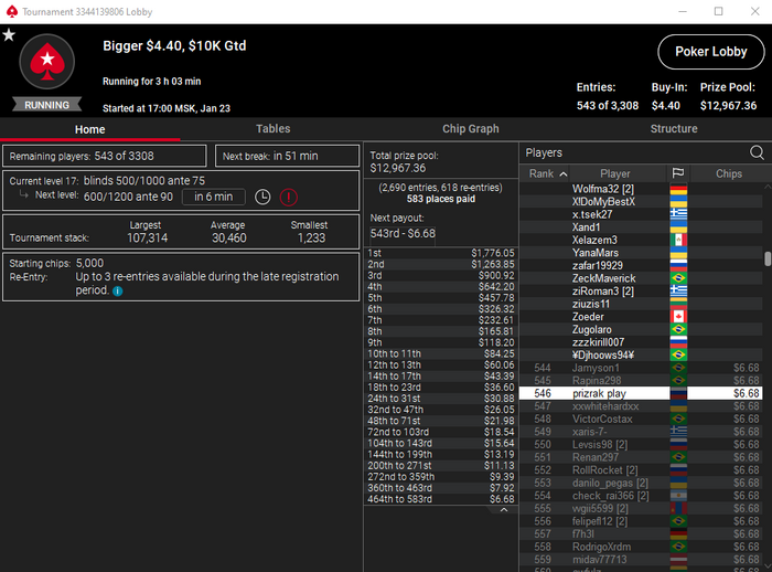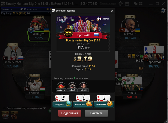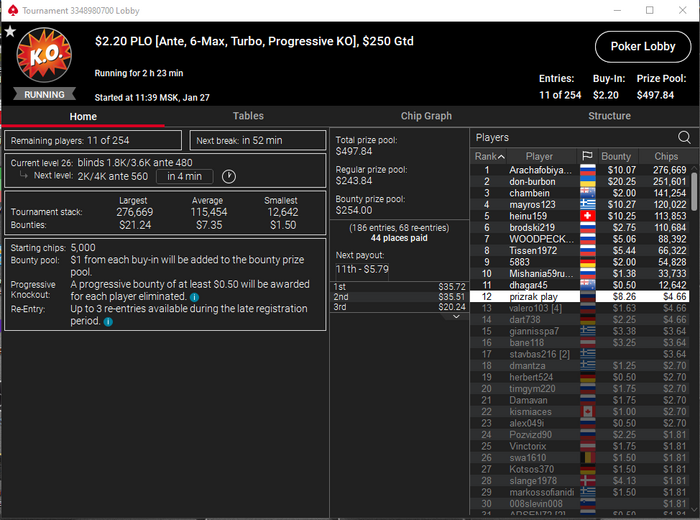 Сессия 101. День -67.93. Бр 3289.92. В банке 656$. Мне вообще кажется, что старзы меня тролят. Вышел на классную финалку в биге за 11. Думал отмазка уже рядом. И чего вы думаете, 3 круга раздавали руки аля 82, Т3 итд, стек просел. В итоге дебик запушил с катофа 23 бб с Т9, принял его на KTs на бб и досвидания. Типок собрал стрит. А я пошел гулять. Из 14 сессий 12 в минус. Добро пожаловать в Покер!