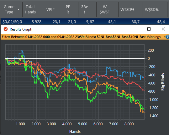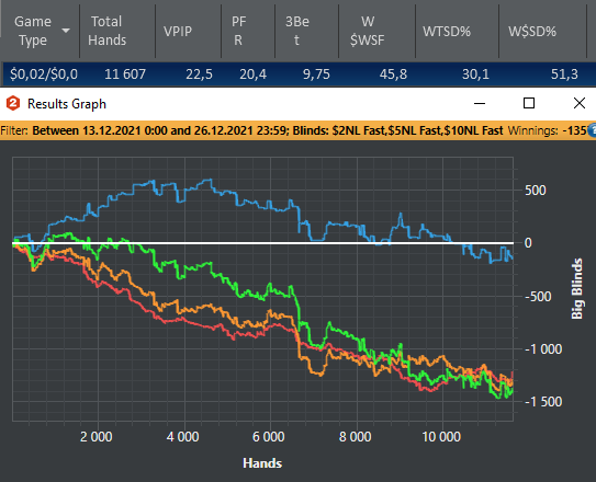 Отыграла 371к рук( из них 319к на нл5). Впервые в жизни за год я отыграла такую большую дистанцию с винрейтом 1,9 Не такого я конечно ждала к концу года, но это в 2 раза больше по винрейту и дистанции чем в 2020 году. Так что какой никакой а прогресс))