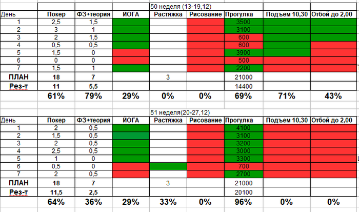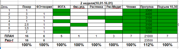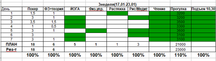 На 3 неделе выполнила все цели, но где-то с пятницы начала уже чувствовать усталость. Оч хочется отдохнуть нормально, но нельзя. Есть большой риск скатиться к жизни распиздяйской Эту неделю еще постараюсь продержаться, а потом хз, как пойдет.