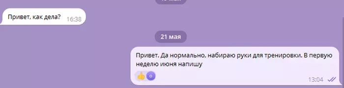 На днях мне написал тренер: