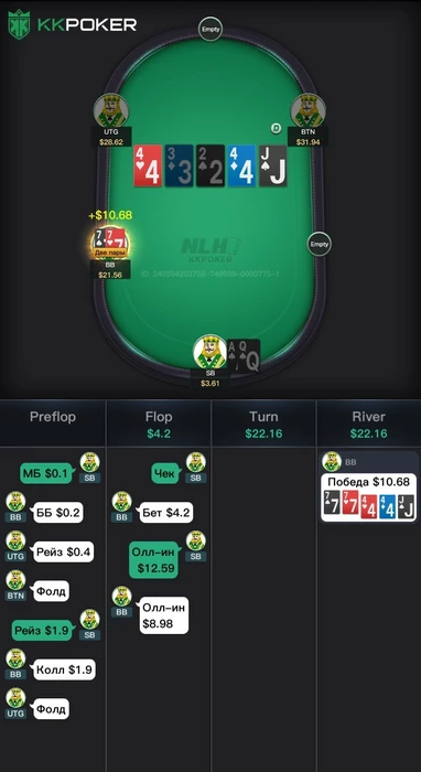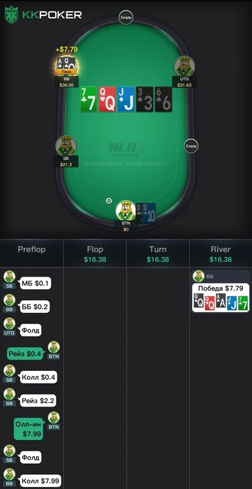 Далбаеб колит 3б QTo и отскакивает раз, за разом.