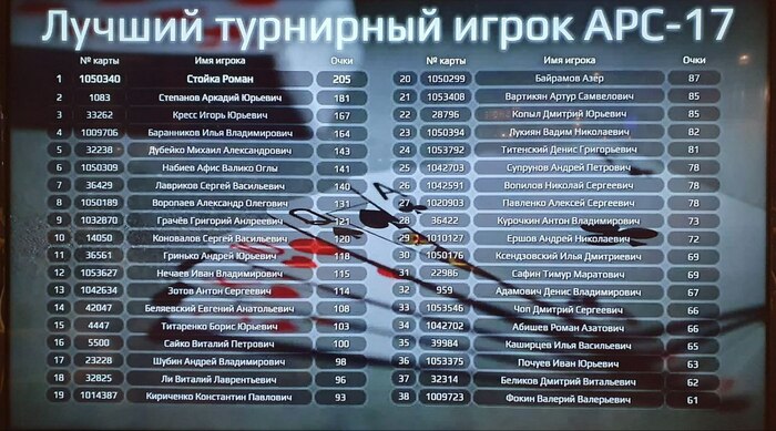 Итоговый лидерборд за звание лучшего игрока APC-17 (топ 3).👇