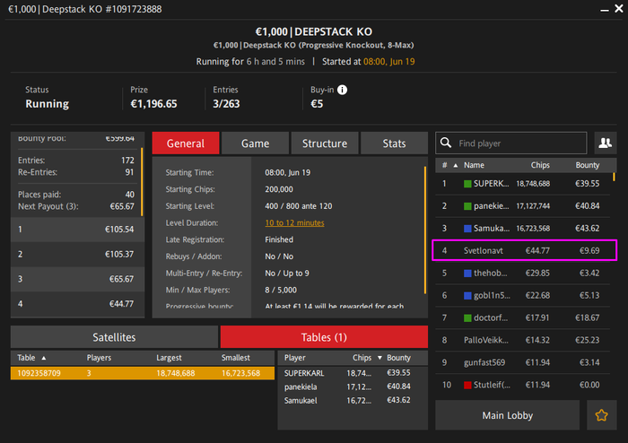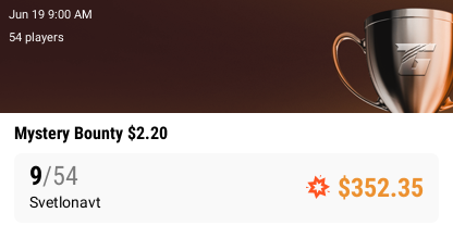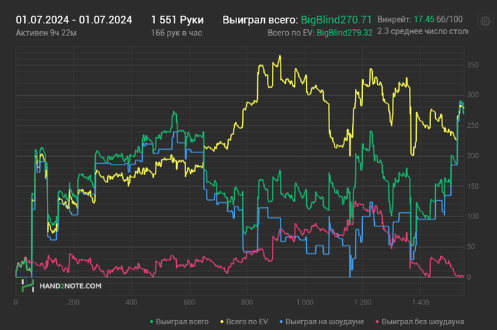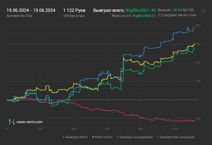 Первый раз такая красная. А по кассе минус. Несколько вылетов на предфиналках. Больше всего бесит впн, когда сидишь 5+ часов, доходишь до предфиналки, вылетаешь в монетке, получаешь 6$ 😬