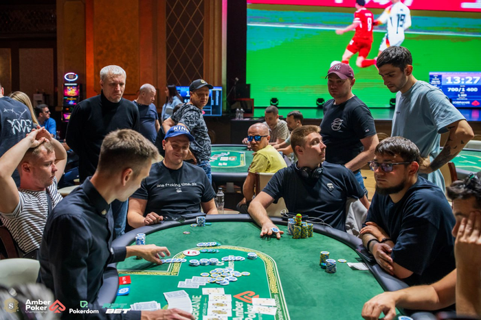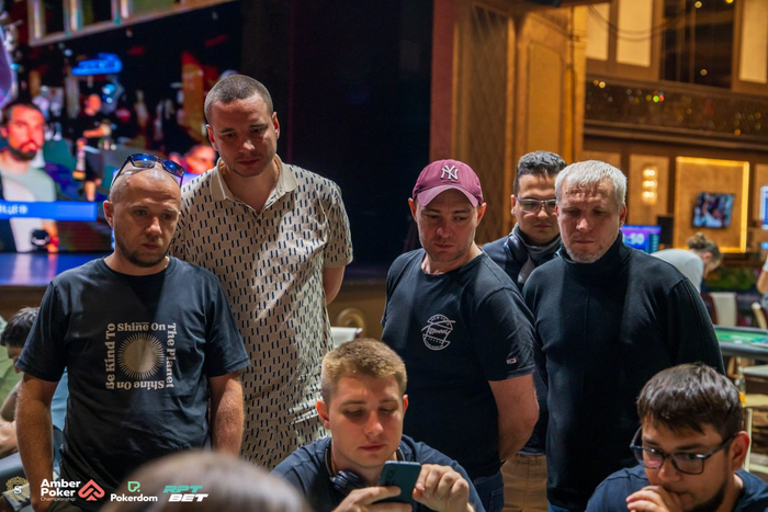 В турнире бабл. Синхронные раздачи. Есть несколько коротких стеков. Самый короткий Михаил Перепелица и скоро на нем будут блайнды. Обычно самый короткий в таких ситуациях попадает в призы. Посмотрим, будет ли так и в этот раз?