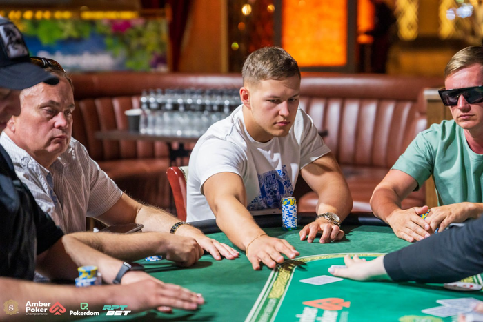 Илья Баранников с первой открылся повышенным сайзом. Все пас. Михаил Перепелица на ВВ. Колл с 2 ББ. Оказался далеко впереди. против . Доска: .