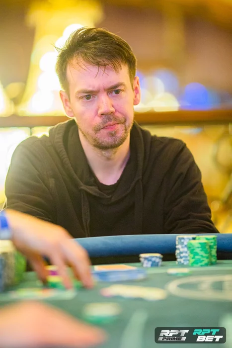 Ушел с ТВ-стола и Йохан Кулс. Монетка в не потащилась. Павел Глазкин с пятерками не просто устоял, а к риверу ещё и сет собрал.