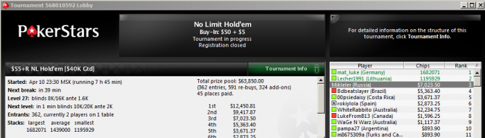 Наступает долгожданный момент. Молча, четким уверенным кликом мышки, я разворачиваю их лимпы запихивая оставшиеся 15 блайндов в пот. Фиши в панике думают, что делать. Они берут таймбанк, пытаются писать мне всякую чушь в чате, но даже не думают колить. Увидев как сбрасывается первый лимпер, все остальные убегают из пота как чертовы крысы. Никогда не доверяйте фишам.