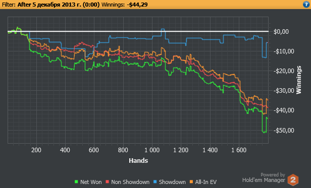 Без шоудауна - постоянные хирофолды , непопадания в 3 бет потах и в обычных потах с фишами . Плюс куча мультипотов,где сидя со своей топ парой я понимал,что "Мне кажется тот парень не блефует,ставя олл ин в троих" :D
