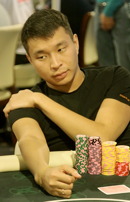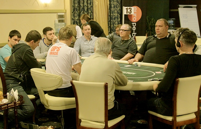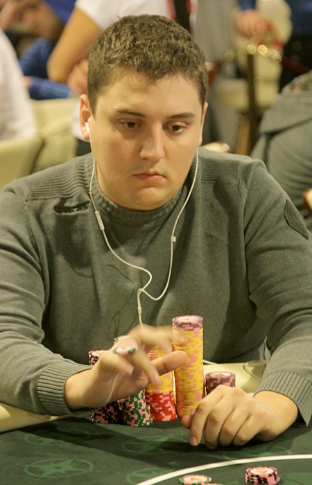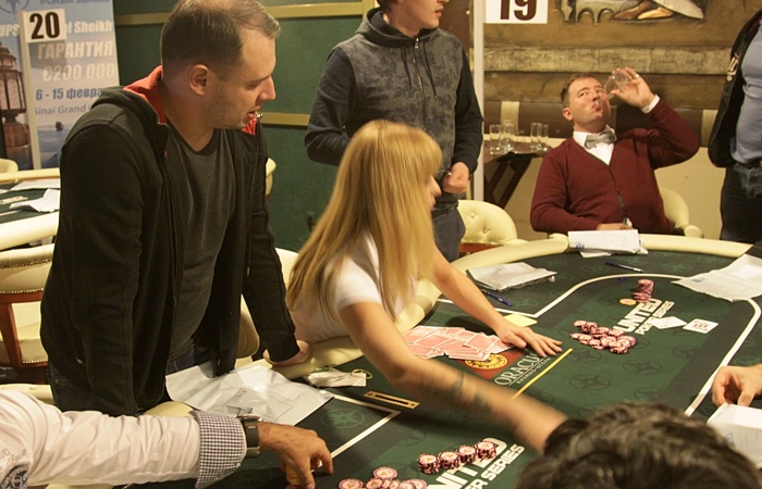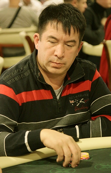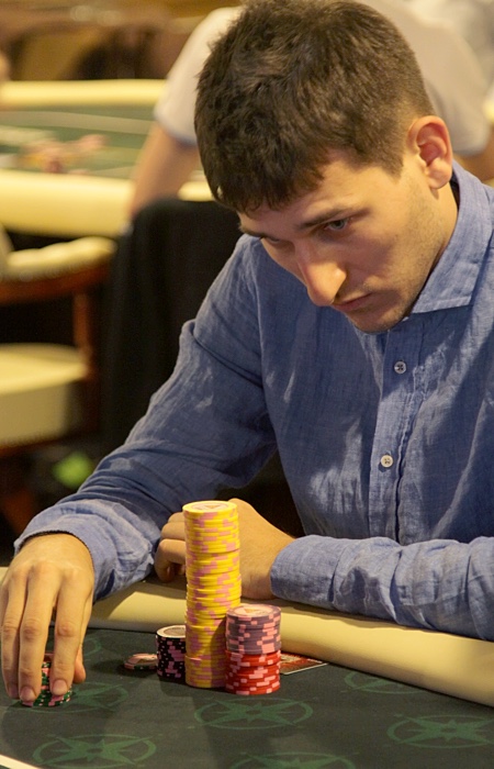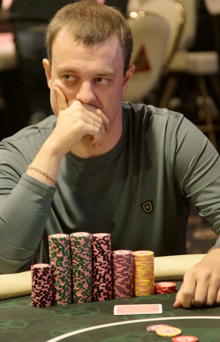 Поднялся из глубины Вадим Курсевич. Долгое время от него ничего не было слышно, на вопрос как дела он отвечал "средне". А потом вдруг стопка желтых фишек перед ним стремительно пошла вверх. И вот он уже верховодит столом!