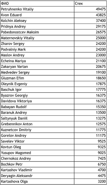Напомним, в турнире было зафиксировано 162 входа, в игре осталось - 64 человека. Средний стек - 53,115.