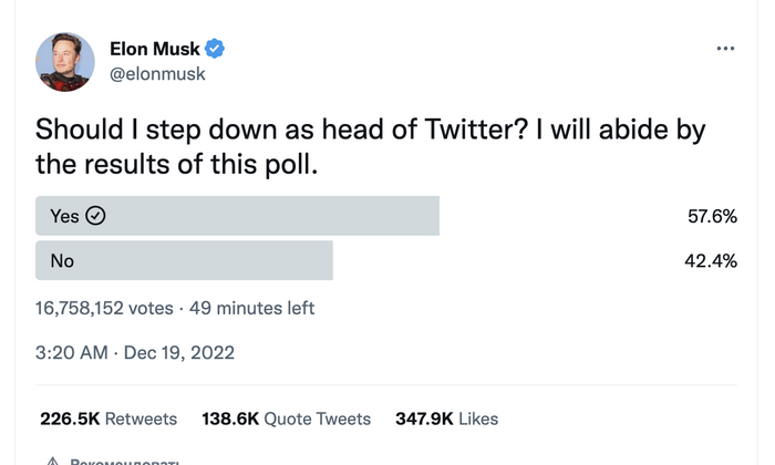 Сильный поступок Маска. Уверен что он поступит как проголосует большинство