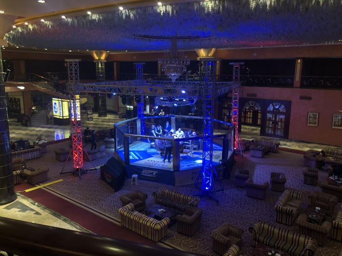Вчера очень весело было. Когда за твою голову дают двойной бай-ин, раздачу с тобой хотят играть все. За моим столом сидел парень с коротким стеком, трижды об меня удвоился, ну и конечно выбил меня. Турнирный менеджер сказал, что надо сфотографироваться с ним. Говорю, не хочу, не буду. Он говорит - надо. Ну надо так надо. Пришлось оторваться от поедания картохи и фоткаться.