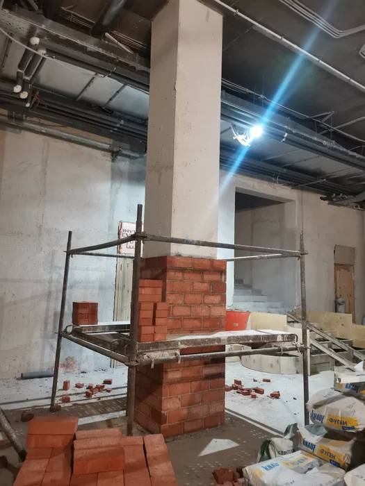 Вчера начали обкладывать колонны в четверть кирпича! Зачем?