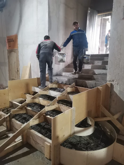Сегодня монолитчики заливали три входные группы(ступени)
