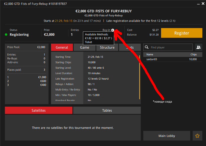 Скажем, у меня на счет 500$. Я вижу в лобби турнир за 5.0 евро. Но в момент регистрации (в самом окошке регистрации) будет показано, что с моего usd счета спишется, скажем, 6.8 usd?