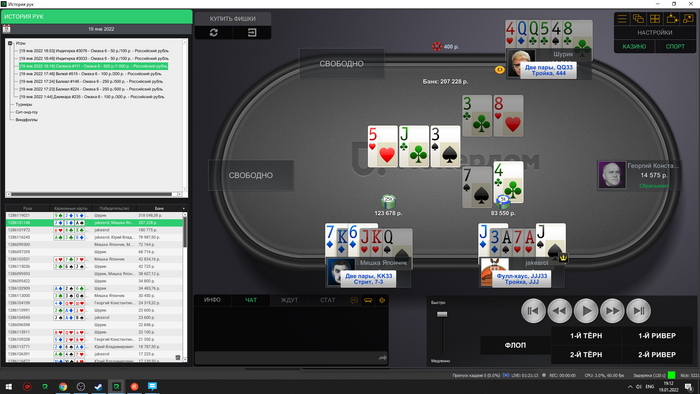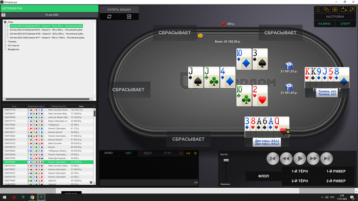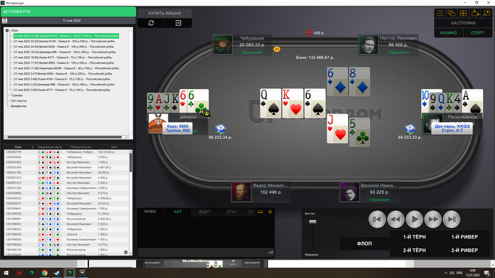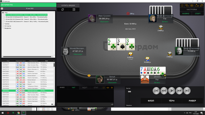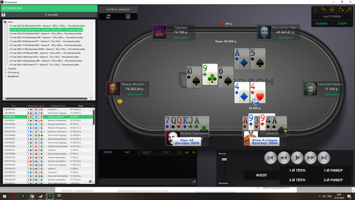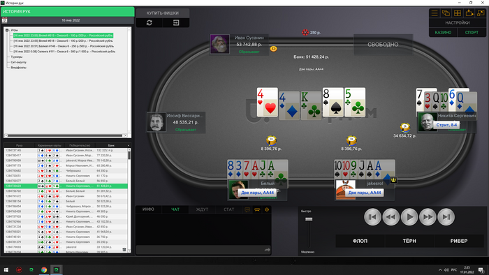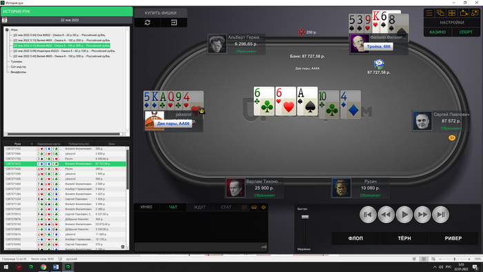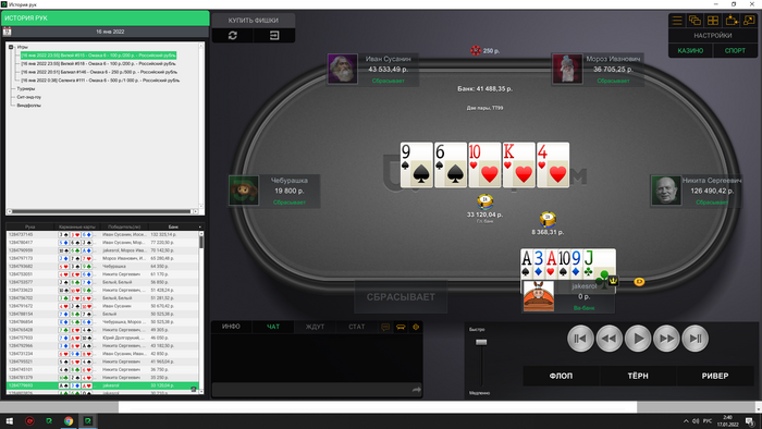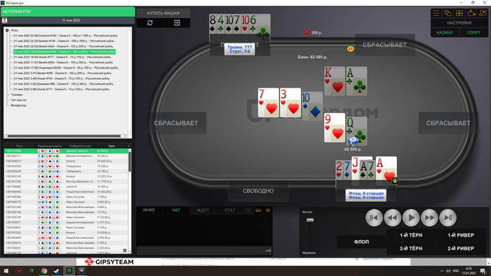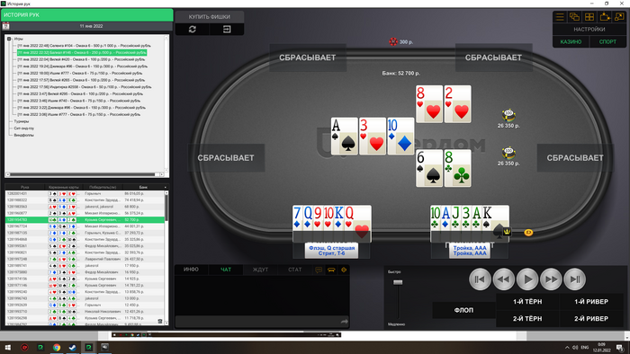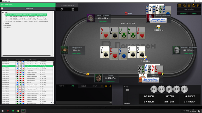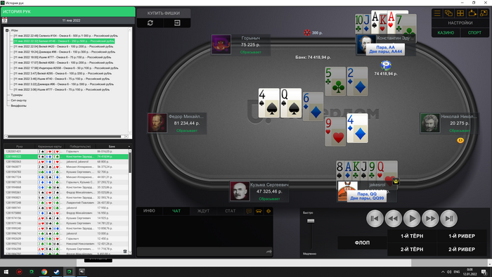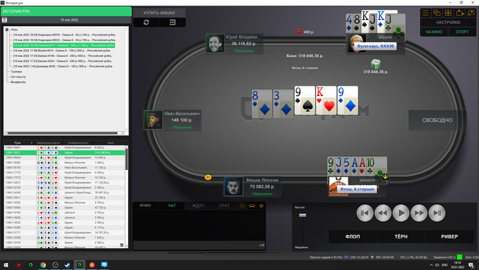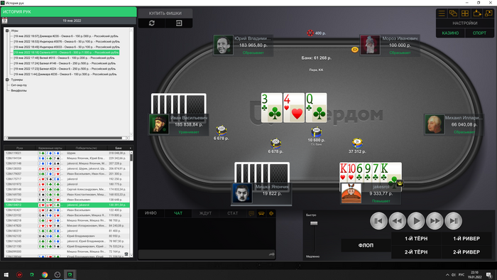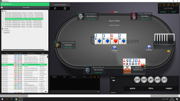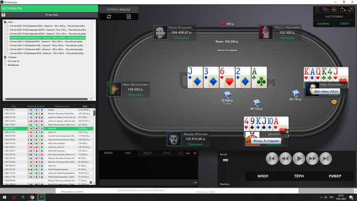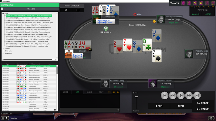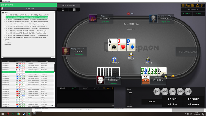 Сейчас скину все крупные раздачи со мной за этим столом