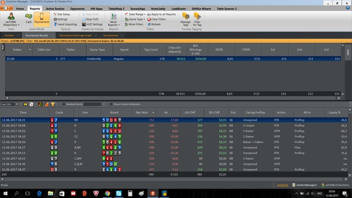Недурно. А я уже и не помню, когда последний раз видел X25. Впрочем, я не расстраиваюсь, потому что так же, как и ты, проигрываю их в одну калитку. Зато показываю ITM больше 50% в X10. Но выпадают они немногим чаще X25. А еще меньше, чем за 10K турниров мне выпадали 2 X100, которые я выиграл. Так что уверяю тебя, не стоит расстраиваться из-за множителей. Где-то находишь, где-то теряешь.