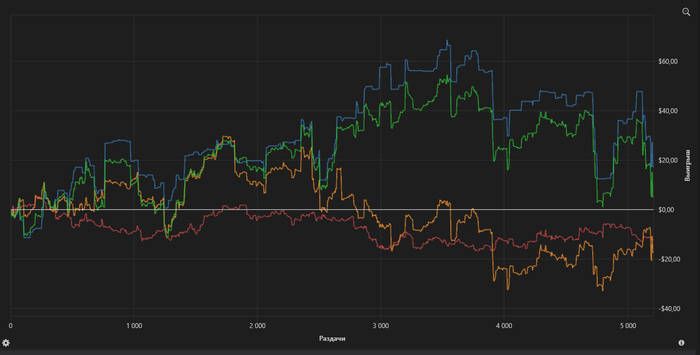 В итоге, принял решение играть NL10 и строить более внятный БР, как это было, когда обучался в Джуниоре. Но, как бы не так. Дисперсия, видимо, решила отыграться на мне по полной и в итоге в кассе $52.6. Ну что ж, NL5 так NL5. Даже интересно.