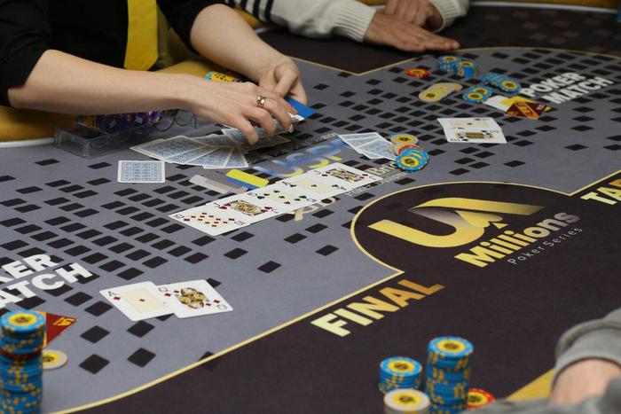 Стеки игроков на старте финала: Хамид (Харьков) 150 к Павел (Харьков) 215 к Денис (Киев) 246 к Николай (Харьков) 258 к Максим (Ровно) 112 к Миша (Луцк) 390 к Дима (Киев) 340 к Богдан (Полтава) 201 к Андрей (Харьков) 587 к Блайнды: 3 -6 к