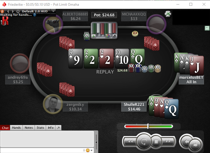 Poker Stars, $0.05/$0.10 Pot Limit Omaha Cash, 6 Players