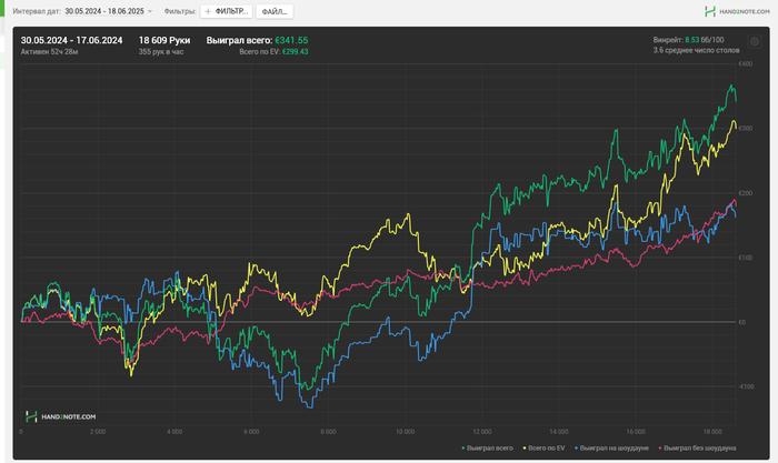 В фонде с 30 мая открыл новый сет, играю на Редстаре, полностью спустился на НЛ20, иногда подключаю НЛ10 когда не набрать столов с целевыми.
