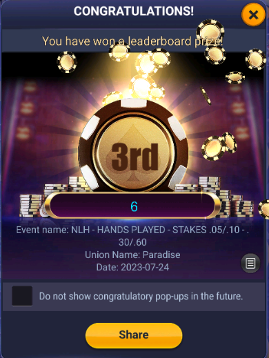 Ран в эти три дня был очень тяжелый + часть раздач со страддлом не трекнулась. Еще удалось впрыгнуть в ИТМ во фриролле и попасть в призы в ЛБ за откатанную дистанцию в одном из клубов: