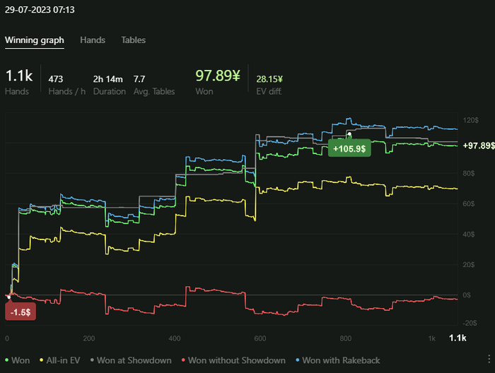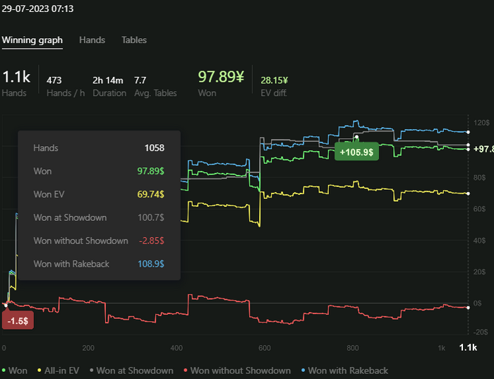 Saymeyes @ 28.07.23bxr23, Сколько же ты рук наигрываешь?У меня с учётом игры только на нл 10 выходит около 40$ рб за 12-14к рук в неделю