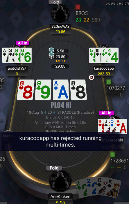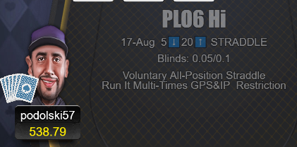 Видимо, любопытный господин из предположительно Подольска сегодня решил, что 6 карт в омахе - слишком много. Ведь сегодня я повстречал его за столом классического ПЫЛЫО, пусть хоть и со страддлом!