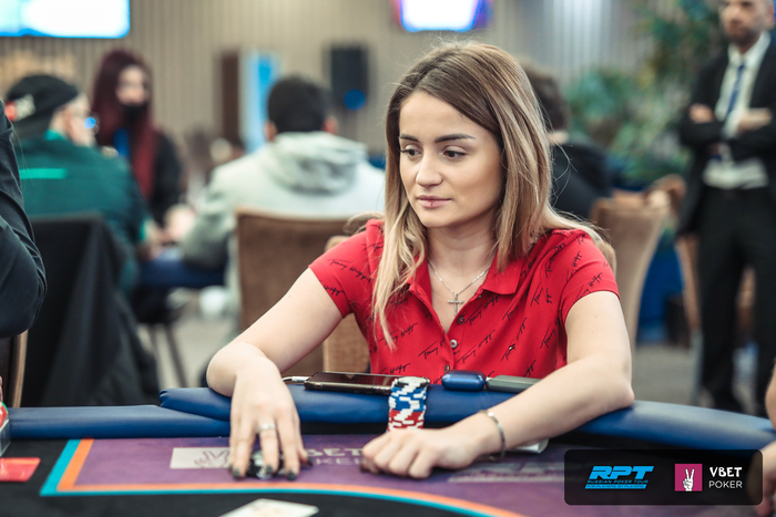 А затем сразу два аута. За первым столом vs выбывает Лидия Беляева, ее сопернику Сергею Владимирову на доске рисуют ривером флеш. Лидия Беляева - 10 место.