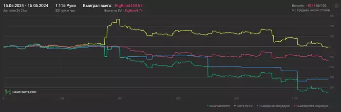 Я отыграл 1.5 часа сессию и пошел на перерыв, завтракать. После вернулся, и по ощущениям уже бы закончить день, т.к. чувствовал сонливость и небольшой туман в голове, но решил чекнуть столы. Катать не в оптимальном состоянии - фатальная ошибка!