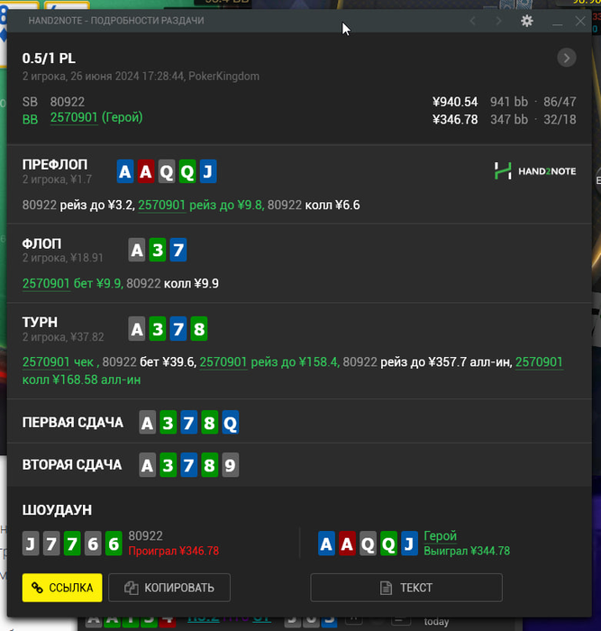 Наверняка вам известно, что июнь выдался для меня лучшим месяцем за все время игры в кэш пятикартки (это я глупость сморозил насчет "известно", потому что копировал текст напрямую из тг. простите, это повторится). Да что там говорить, за все мое время игры в покер.