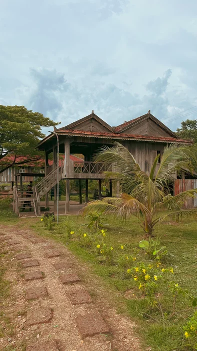 Из того, что больше всего привлекало внимание, вспоминаются только местные дома. Он построены на сваях и имеют большое пространство между землей и первым этажом. Такой традиционный азиатский вариант защиты дома от влаги и всяких гадов. Иногда это пространство внизу образует отдельный этаж, где в сухой сезон ставят столы и стулья, вешают гамаки. В общем, тусят в течение дня. Камбоджийцы, к слову, любят лежать в гамаках. Кажется, даже сильнее, чем вьетнамцы. В этом их можно лишь поддержать.