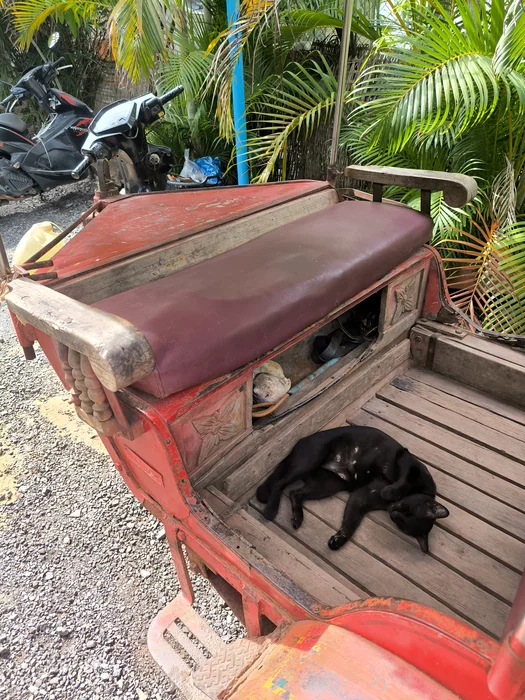 Поскольку для местных этот способ транспорта - буквально самое дешманское такси, иногда попадаются откровенные рыдваны (если это определение здесь применимо). Может приехать сильно потрепанный агрегат с порванной обивкой сиденья, в ногах будут валяться бутылка с водой, пара тряпок и палка. А еще водитель может так увлечься просмотром ленты в фейсбуке, что у него на дорогу упадет шлем (не с головы, конечно). Весело.