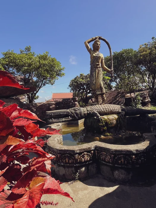 Само собой, есть на территории парка и буддийский храм, а также самая большая скульптура Лок Йеай Мао — богини, героини кхмерских мифов и покровительницы путешественников. Можно посмотреть еще на бывшую королевскую резиденцию, традиционную камбоджийскую деревню и на здание Бокор Хилл — некогда крутого французского отеля в колониальном стиле, а теперь его жалкого подобия. Говорят, там также раньше располагалось казино. Ну, что тут еще рассказать — смотрите сами.