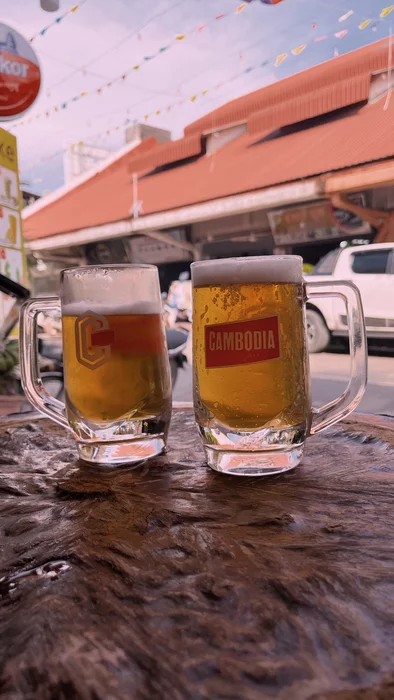 Отдохнув, мы отправились менять деньги. Советы из интернета говорили, что делать это надо напротив главного рынка. Но мы не догадывались, что это происходит прямо на улице. У тротуара стоит небольшая тумбочка, за которой скорее должны продавать лотерейные билеты, а за ней — девушка, готовая быстро конвертировать портреты американских президентов в фотографии выдающихся представителей кхмерской нации.
