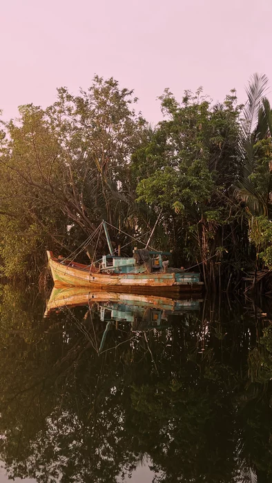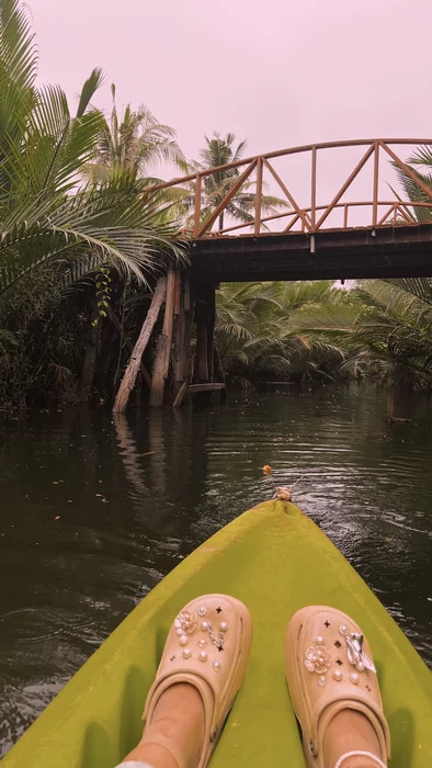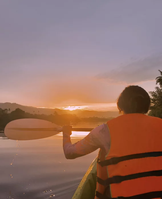 В тот же день мы отправились встречать закат на каяке. Предстояло выйти из петли в мангровых зарослях к основному течению реки. Хозяйка гестхауса сказала, что сделать это можно примерно за час. Так наши силы еще не переоценивали…