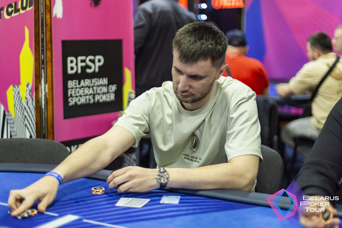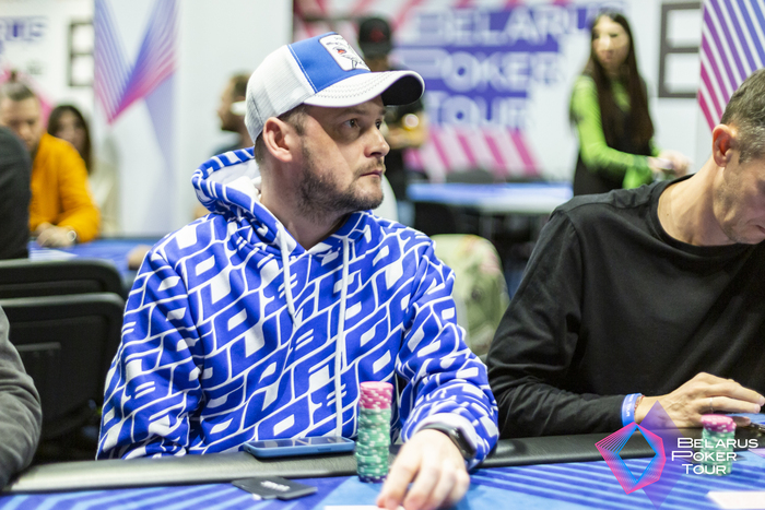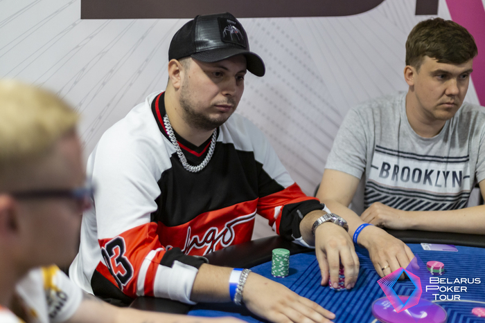 Тоже с минимально выплатой вылетает Павел Мешков. Отдал свои фишки чиплидеру Егору Толченову < .